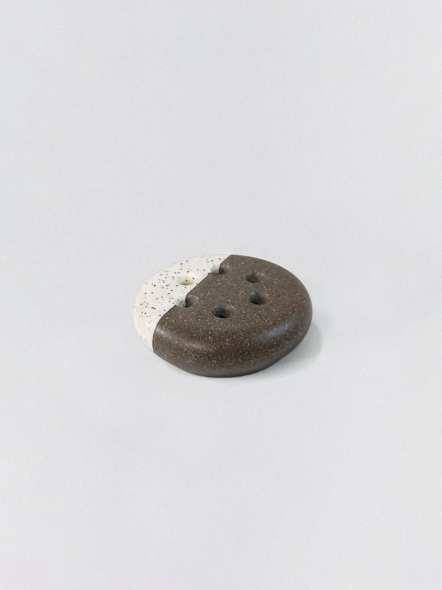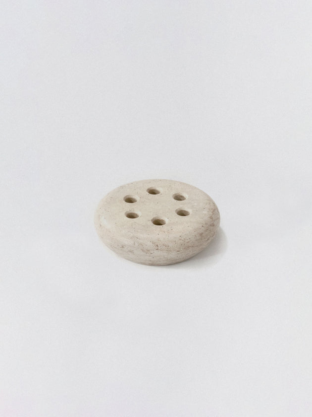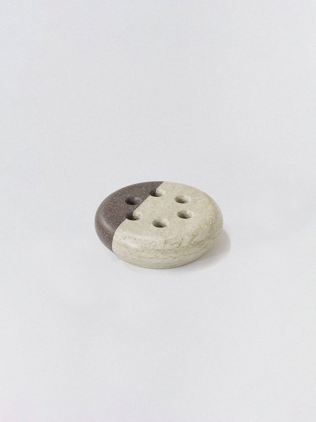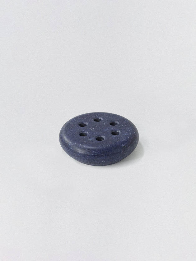 An umbrella stand that serves as an eye-catching centerpiece for the entranceway. Its sculpted, round, marble-like form utilizes the material's weight to create a beautiful and practical design, and it takes up minimal space when stored. It is made of water-resistant materials and designed to be suitable for both thick and thin-tipped umbrellas.